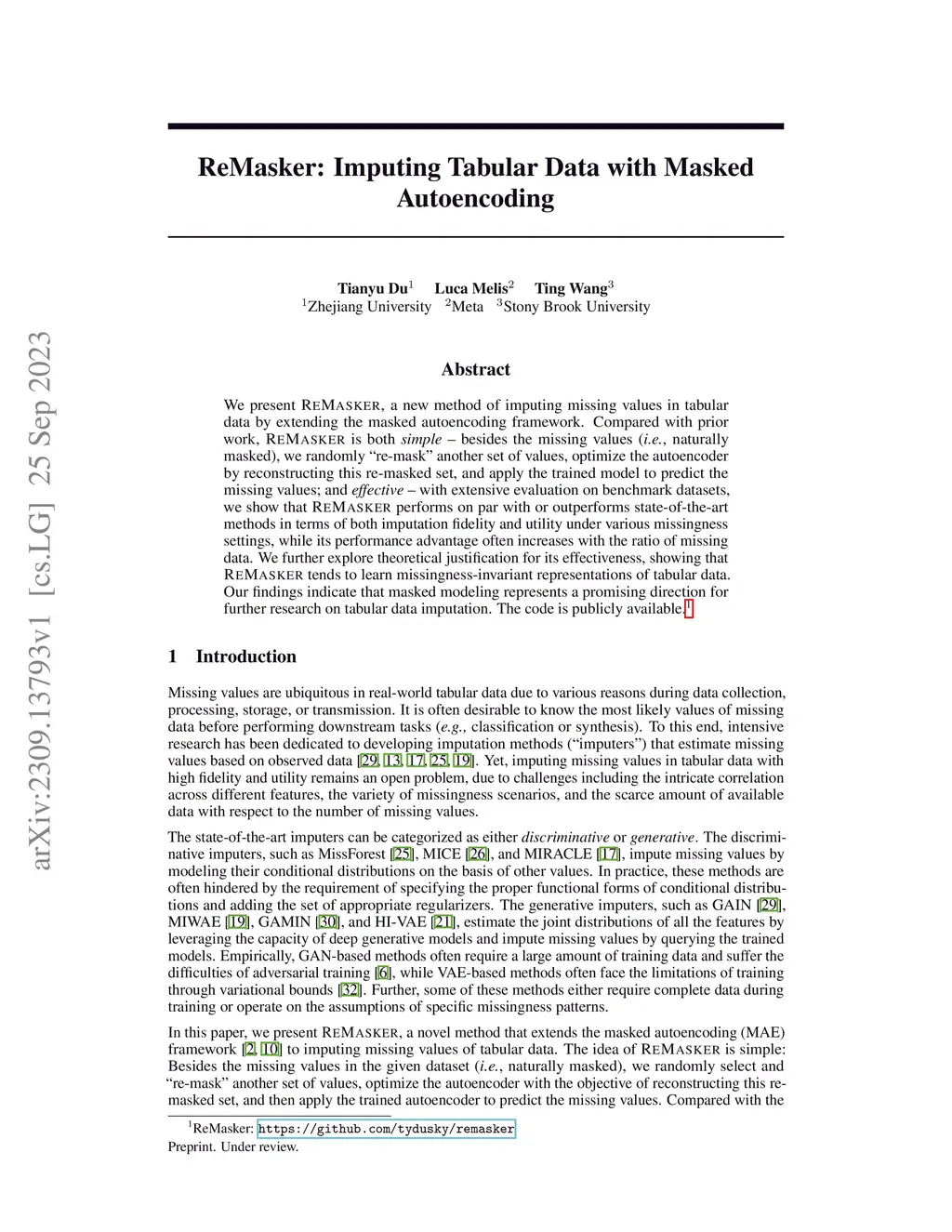 ReMasker: Imputing Tabular Data with Masked Autoencoding