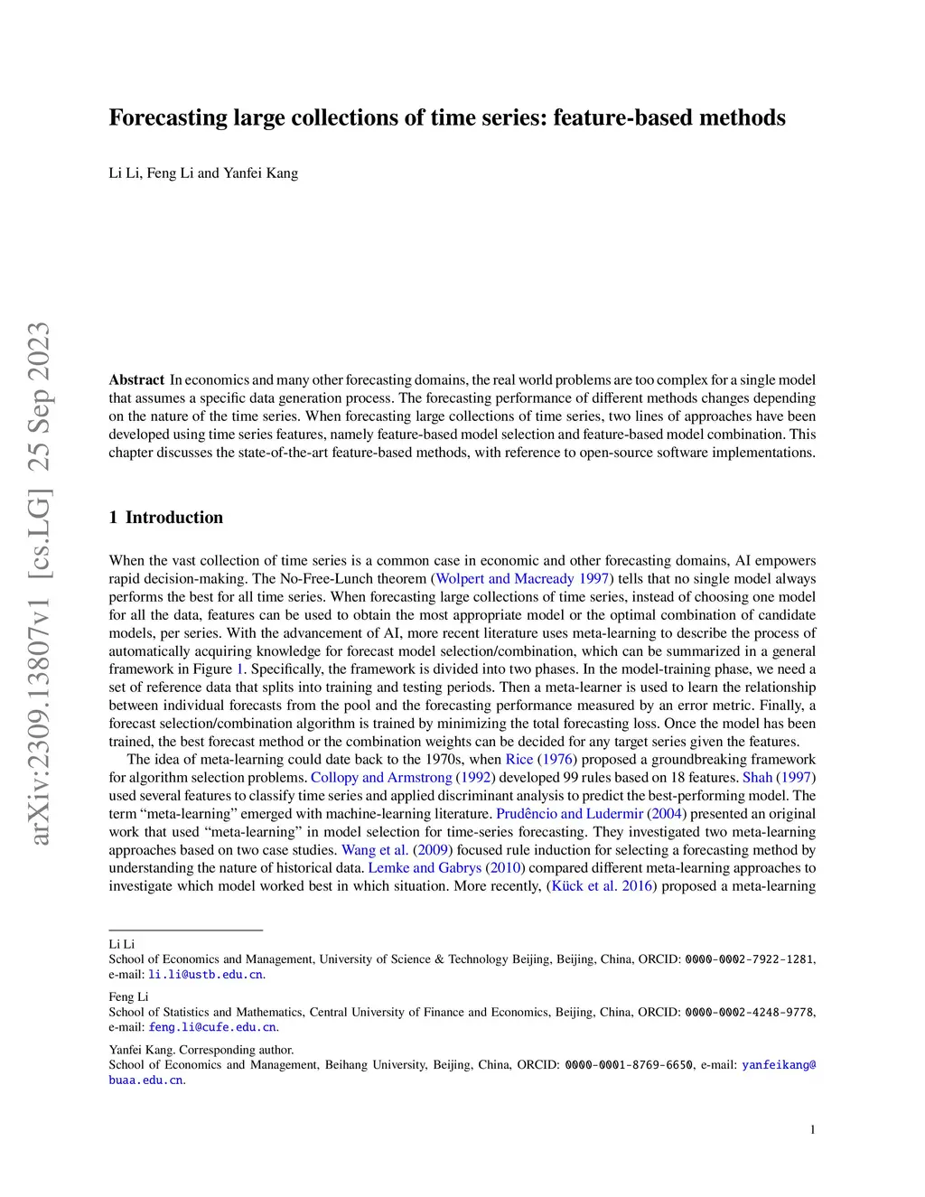 In economics and many other forecasting domains, the real world problems are too complex for a single model that assumes a specific data generation process. The forecasting performance of different methods changes depending on the nature of the time series. When forecasting large collections of time series, two lines of approaches have been developed using time series features, namely feature-based model selection and feature-based model combination. This chapter discusses the state-of-the-art feature-based methods, with reference to open-source software implementations.