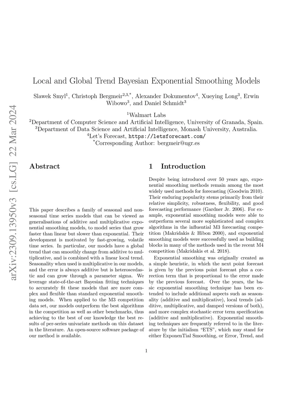 Local and Global Trend Bayesian Exponential Smoothing Models