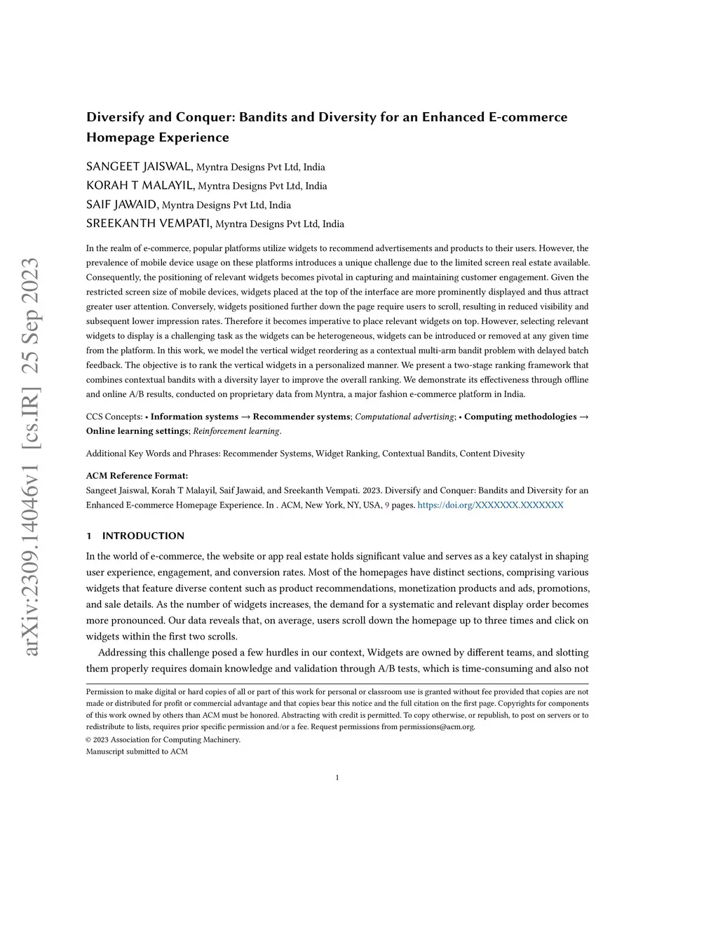 Diversify and Conquer: Bandits and Diversity for an Enhanced E-commerce