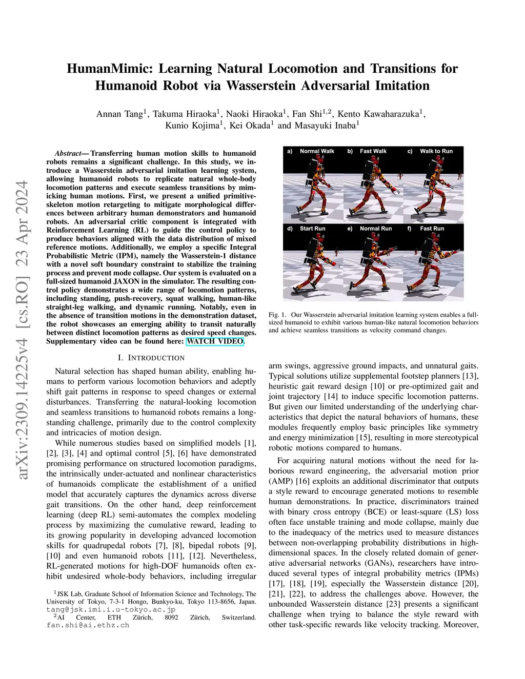 HumanMimic: Learning Natural Locomotion and Transitions for Humanoid