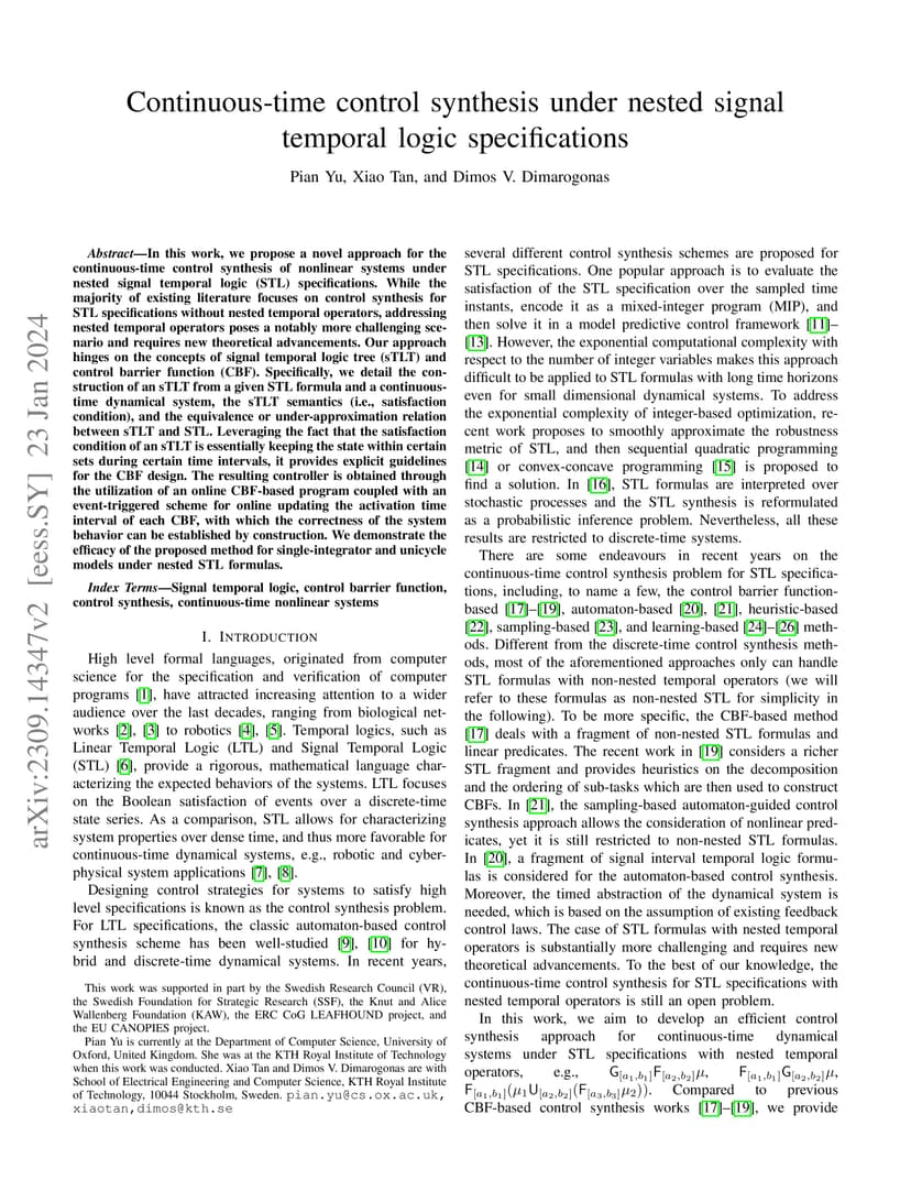 In this work, we propose a novel approach for the continuous-time control synthesis of nonlinear systems under nested signal temporal logic (STL) specifications. While the majority of existing literature focuses on control synthesis for STL specifications without nested temporal operators, addressing nested temporal operators poses a notably more challenging scenario and requires new theoretical advancements. Our approach hinges on the concepts of signal temporal logic tree (sTLT) and control barrier function (CBF). Specifically, we detail the construction of an sTLT from a given STL formula and a continuous-time dynamical system, the sTLT semantics (i.e., satisfaction condition), and the equivalence or under-approximation relation between sTLT and STL. Leveraging the fact that the satisfaction condition of an sTLT is essentially keeping the state within certain sets during certain time intervals, it provides explicit guidelines for the CBF design. The resulting controller is obtained through the utilization of an online CBF-based program coupled with an event-triggered scheme for online updating the activation time interval of each CBF, with which the correctness of the system behavior can be established by construction. We demonstrate the efficacy of the proposed method for single-integrator and unicycle models under nested STL formulas.