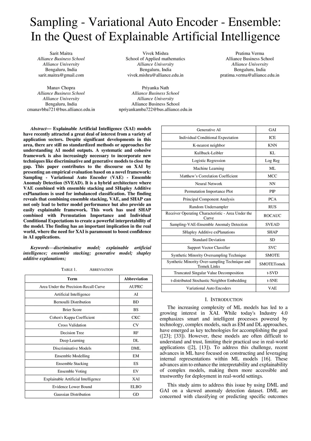 Explainable Artificial Intelligence (XAI) models have recently attracted a great deal of interest from a variety of application sectors. Despite significant developments in this area, there are still no standardized methods or approaches for understanding AI model outputs. A systematic and cohesive framework is also increasingly necessary to incorporate new techniques like discriminative and generative models to close the gap. This paper contributes to the discourse on XAI by presenting an empirical evaluation based on a novel framework: Sampling - Variational Auto Encoder (VAE) - Ensemble Anomaly Detection (SVEAD). It is a hybrid architecture where VAE combined with ensemble stacking and SHapley Additive exPlanations are used for imbalanced classification. The finding reveals that combining ensemble stacking, VAE, and SHAP can. not only lead to better model performance but also provide an easily explainable framework. This work has used SHAP combined with Permutation Importance and Individual Conditional Expectations to create a powerful interpretability of the model. The finding has an important implication in the real world, where the need for XAI is paramount to boost confidence in AI applications.