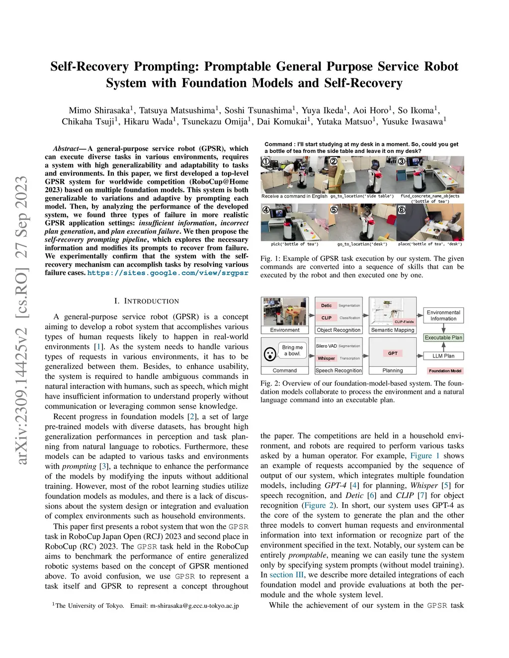 Self-Recovery Prompting: Promptable General Purpose Service Robot System