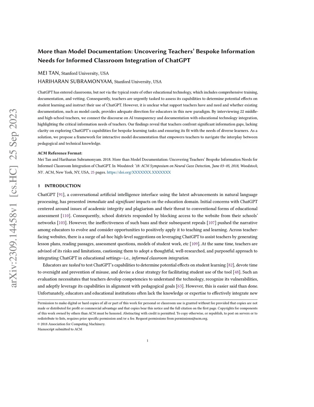 ChatGPT has entered classrooms, but not via the typical route of other educational technology, which includes comprehensive training, documentation, and vetting. Consequently, teachers are urgently tasked to assess its capabilities to determine potential effects on student learning and instruct their use of ChatGPT. However, it is unclear what support teachers have and need and whether existing documentation, such as model cards, provides adequate direction for educators in this new paradigm. By interviewing 22 middle- and high-school teachers, we connect the discourse on AI transparency and documentation with educational technology integration, highlighting the critical information needs of teachers. Our findings reveal that teachers confront significant information gaps, lacking clarity on exploring ChatGPT's capabilities for bespoke learning tasks and ensuring its fit with the needs of diverse learners. As a solution, we propose a framework for interactive model documentation that empowers teachers to navigate the interplay between pedagogical and technical knowledge.