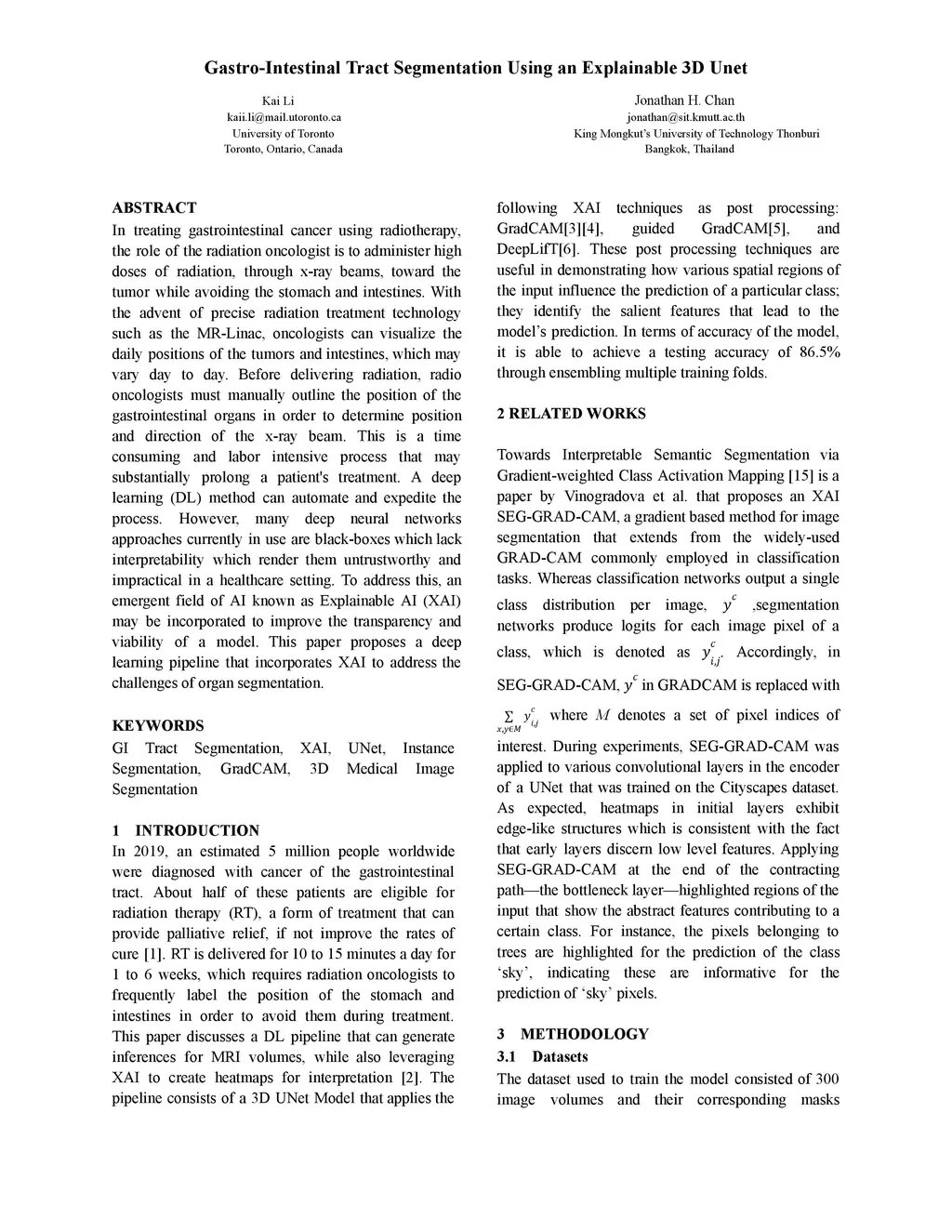 Gastro-Intestinal Tract Segmentation Using an Explainable 3D Unet