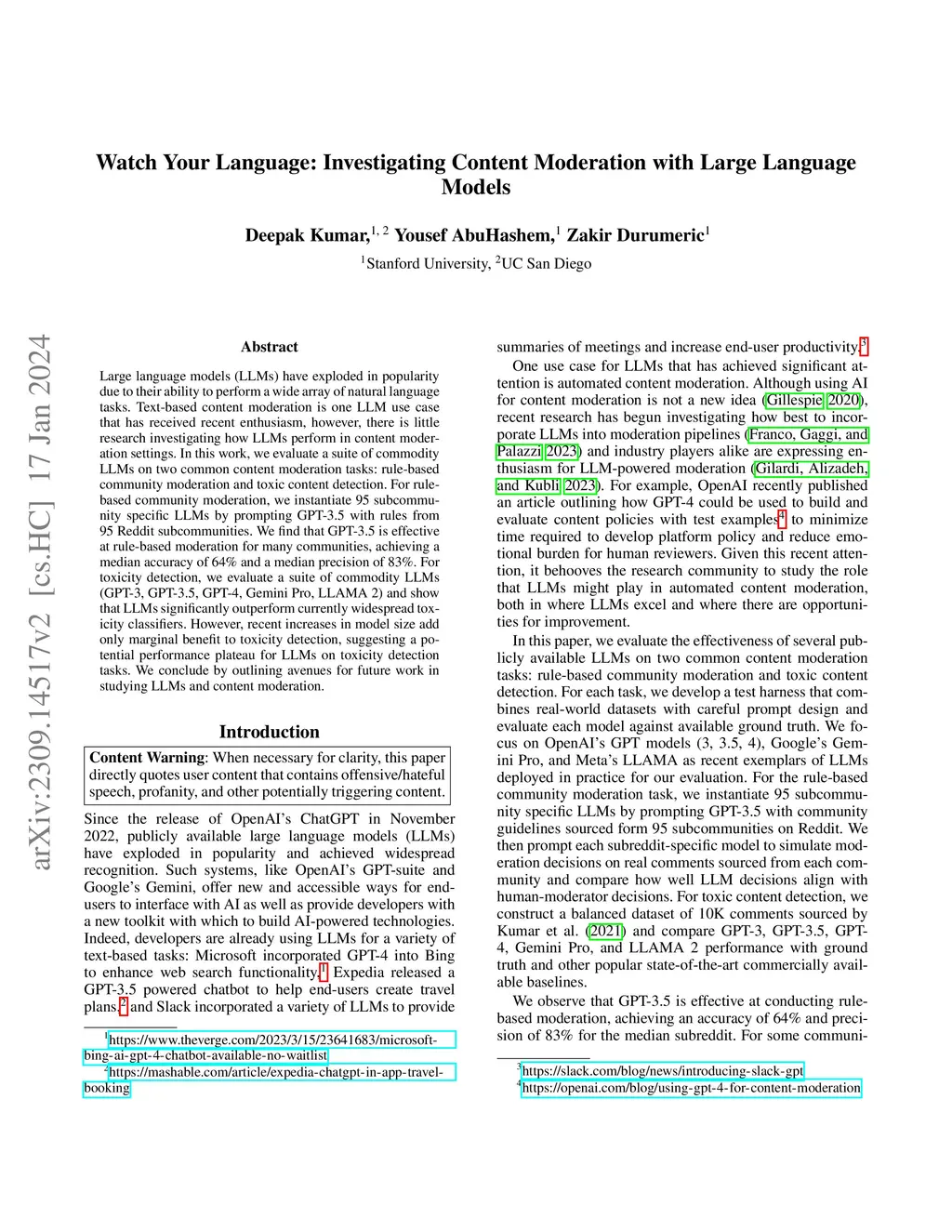 Watch Your Language: Investigating Content Moderation with Large