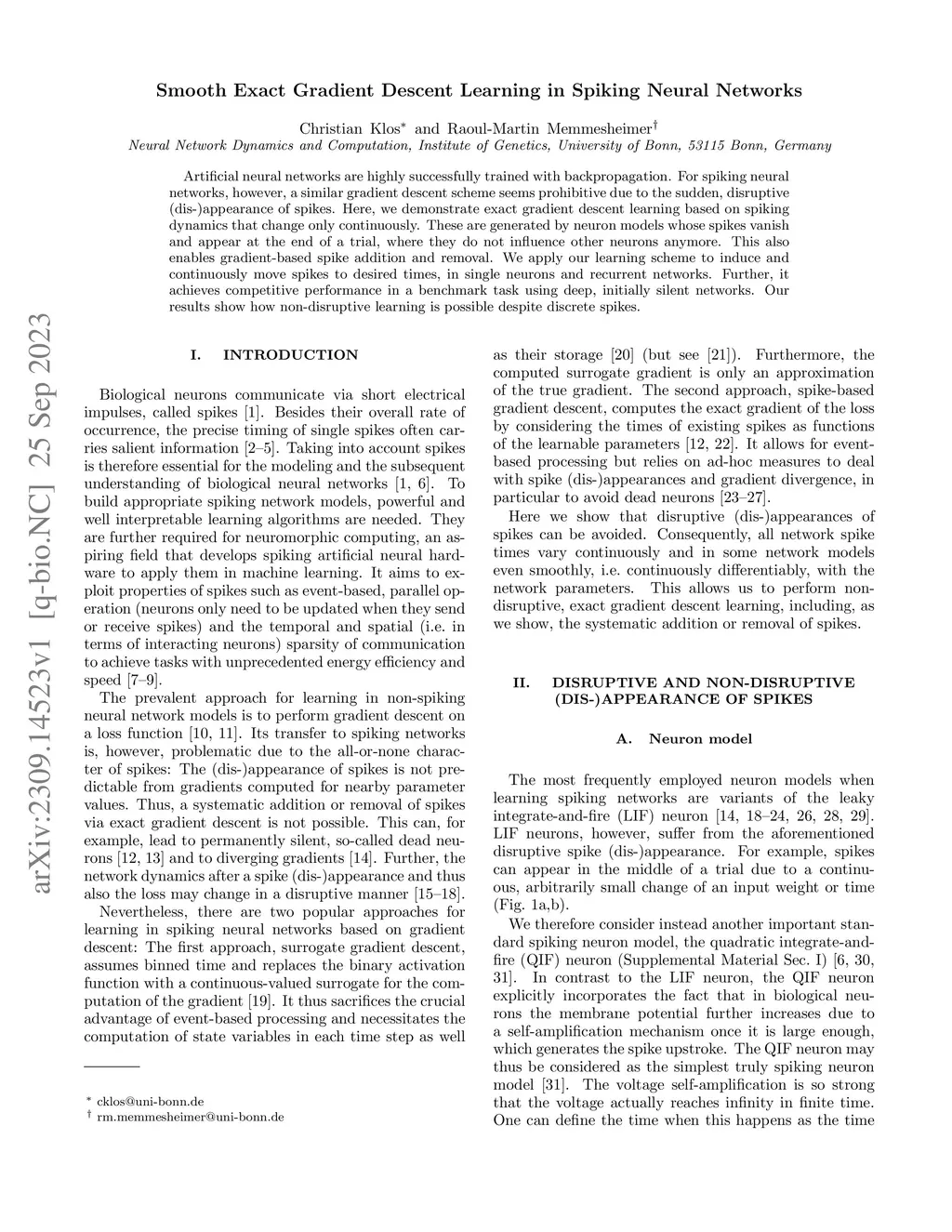 Smooth Exact Gradient Descent Learning in Spiking Neural Networks