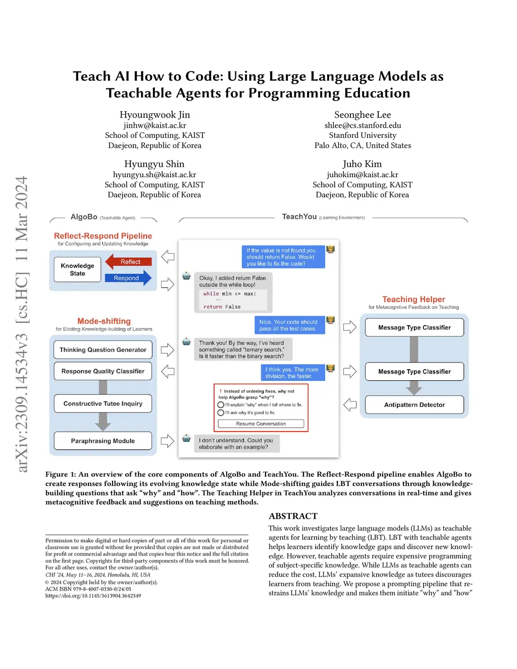 Teach AI How to Code: Using Large Language Models as Teachable Agents
