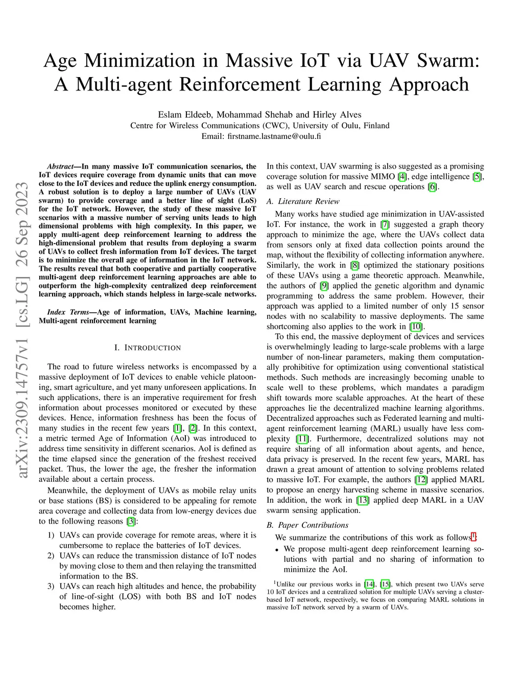 Age Minimization in Massive IoT via UAV Swarm: A Multi-agent