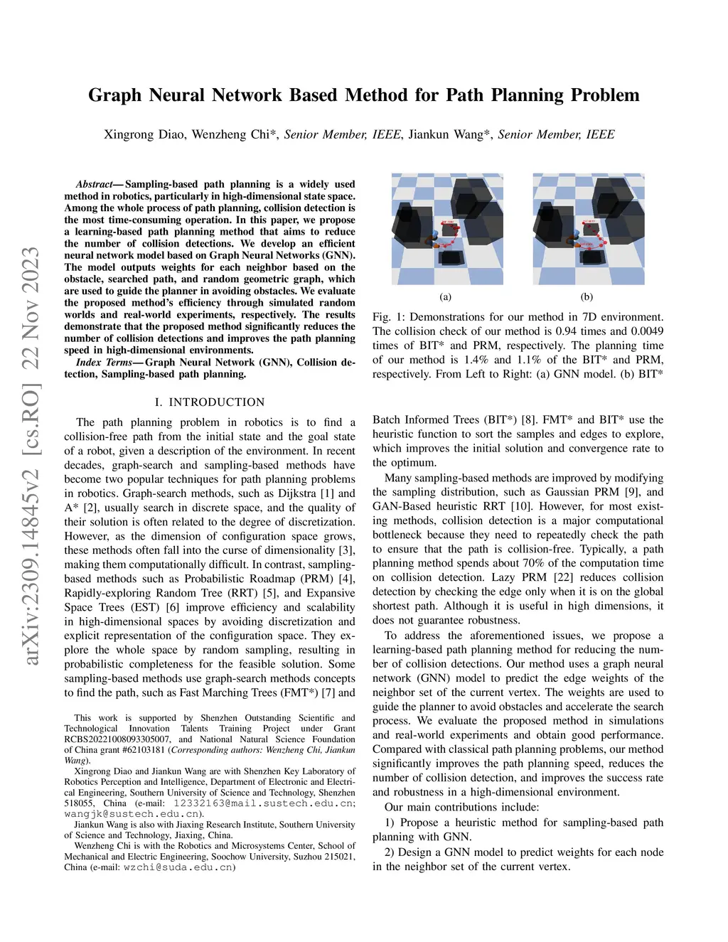 Sampling-based path planning is a widely used method in robotics, particularly in high-dimensional state space. Among the whole process of the path planning, collision detection is the most time-consuming operation. In this paper, we propose a learning-based path planning method that aims to reduce the number of collision detection. We develop an efficient neural network model based on Graph Neural Networks (GNN) and use the environment map as input. The model outputs weights for each neighbor based on the input and current vertex information, which are used to guide the planner in avoiding obstacles. We evaluate the proposed method's efficiency through simulated random worlds and real-world experiments, respectively. The results demonstrate that the proposed method significantly reduces the number of collision detection and improves the path planning speed in high-dimensional environments.