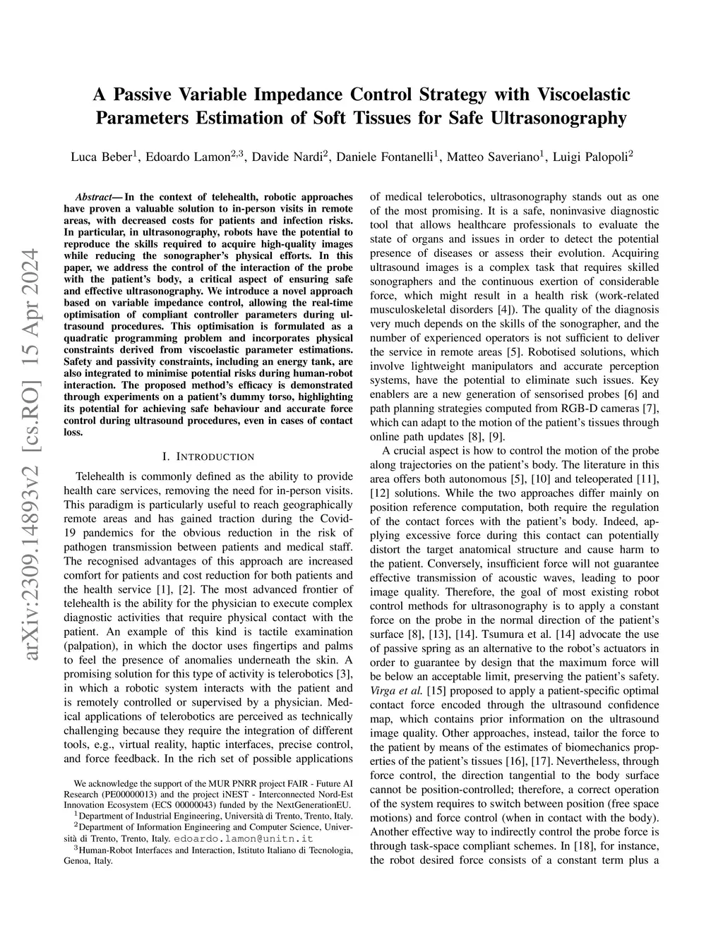 Parameters Estimation of Soft Tissues for Safe Ultrasonography