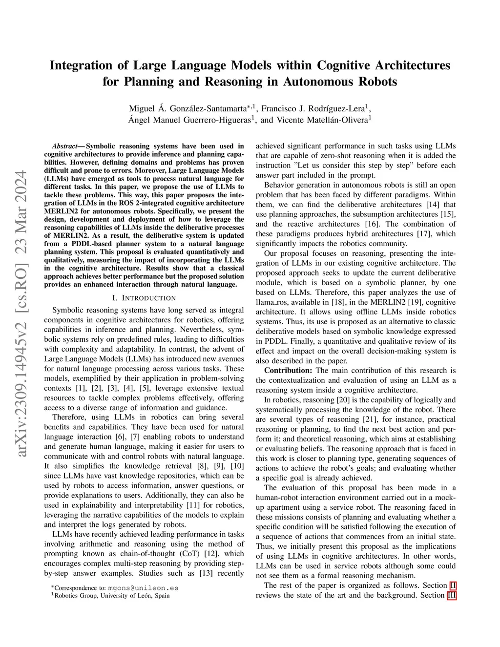 Integration of Large Language Models within Cognitive Architectures for Autonomous Robots