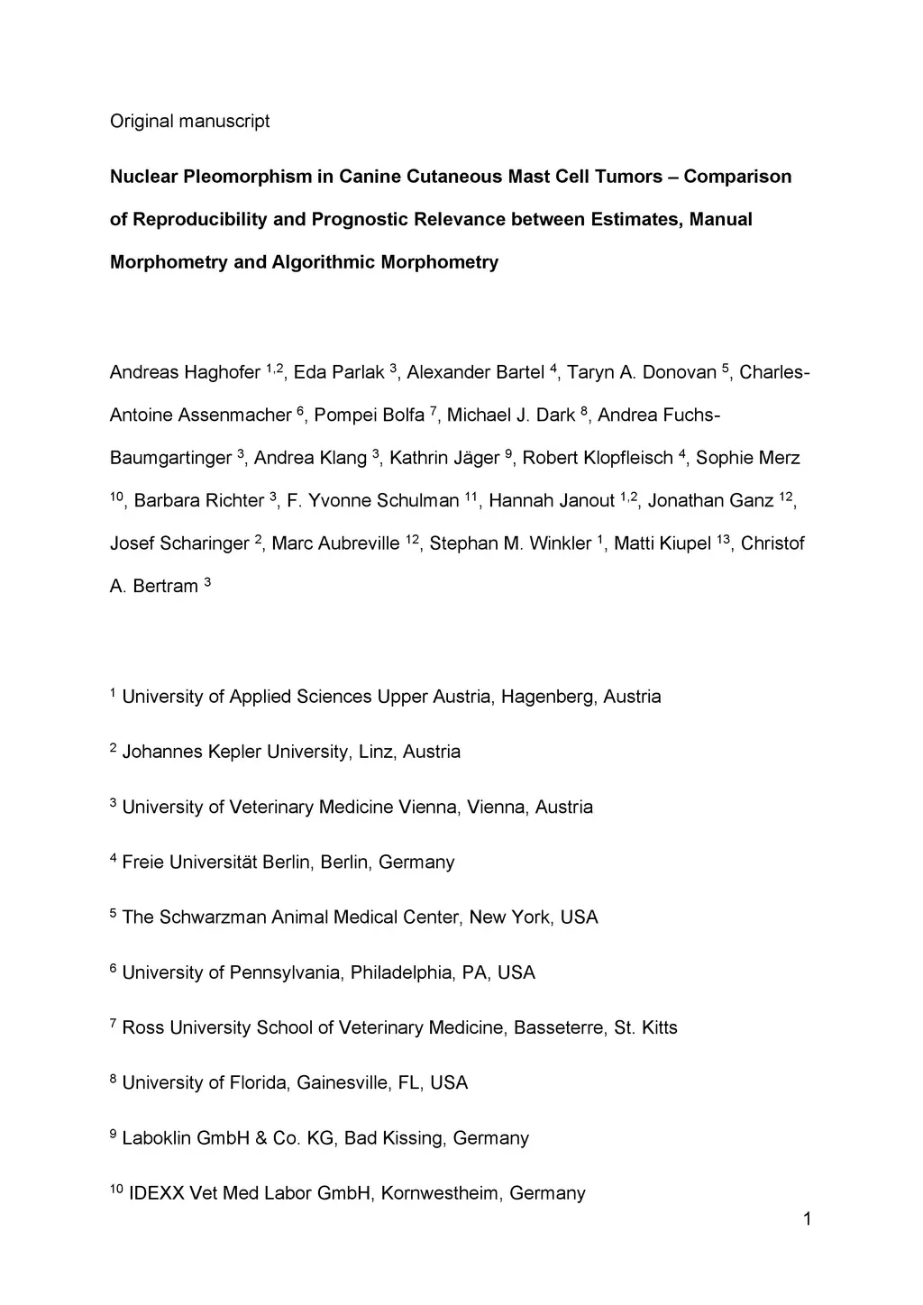 Nuclear Pleomorphism in Canine Cutaneous Mast Cell Tumors: Comparison of