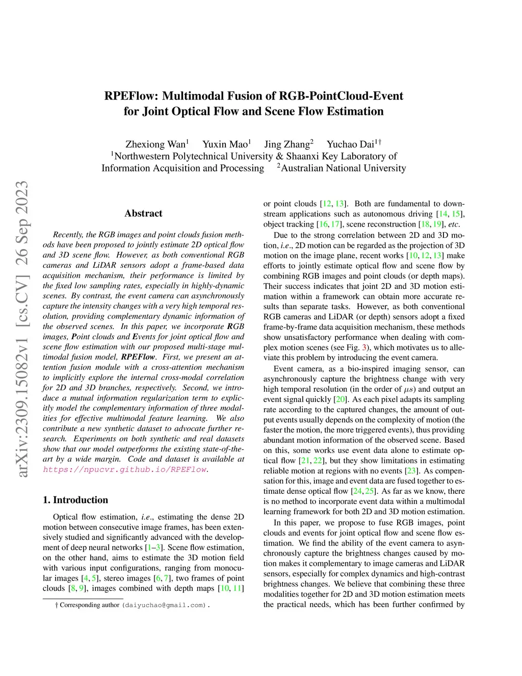 RPEFlow: Multimodal Fusion of RGB-PointCloud-Event for Joint Optical