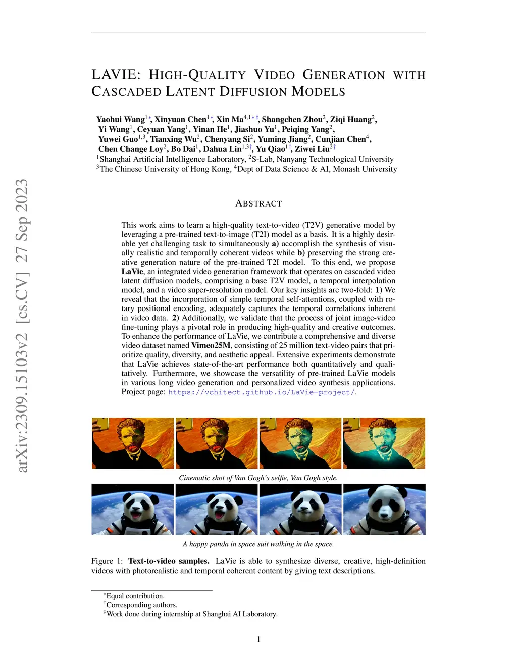 LAVIE: High-Quality Video Generation with Cascaded Latent Diffusion
