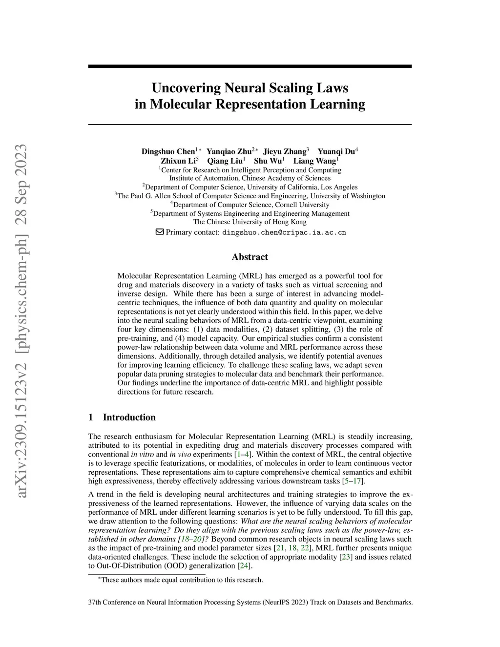 Uncovering Neural Scaling Laws in Molecular Representation Learning
