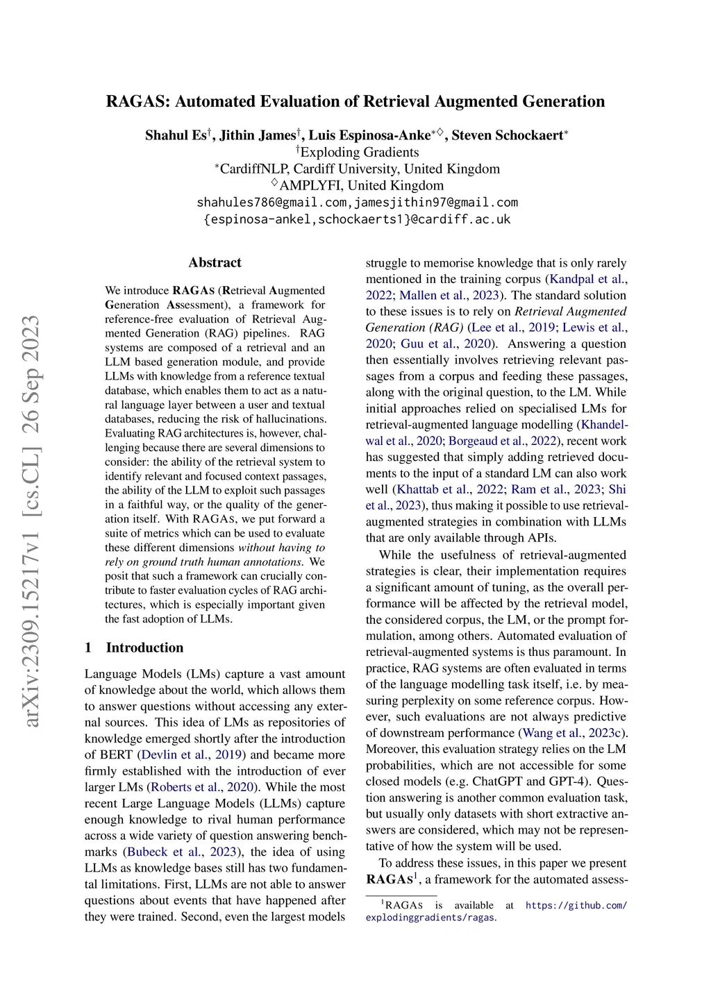Ragas: Automated Evaluation of Retrieval Augmented Generation