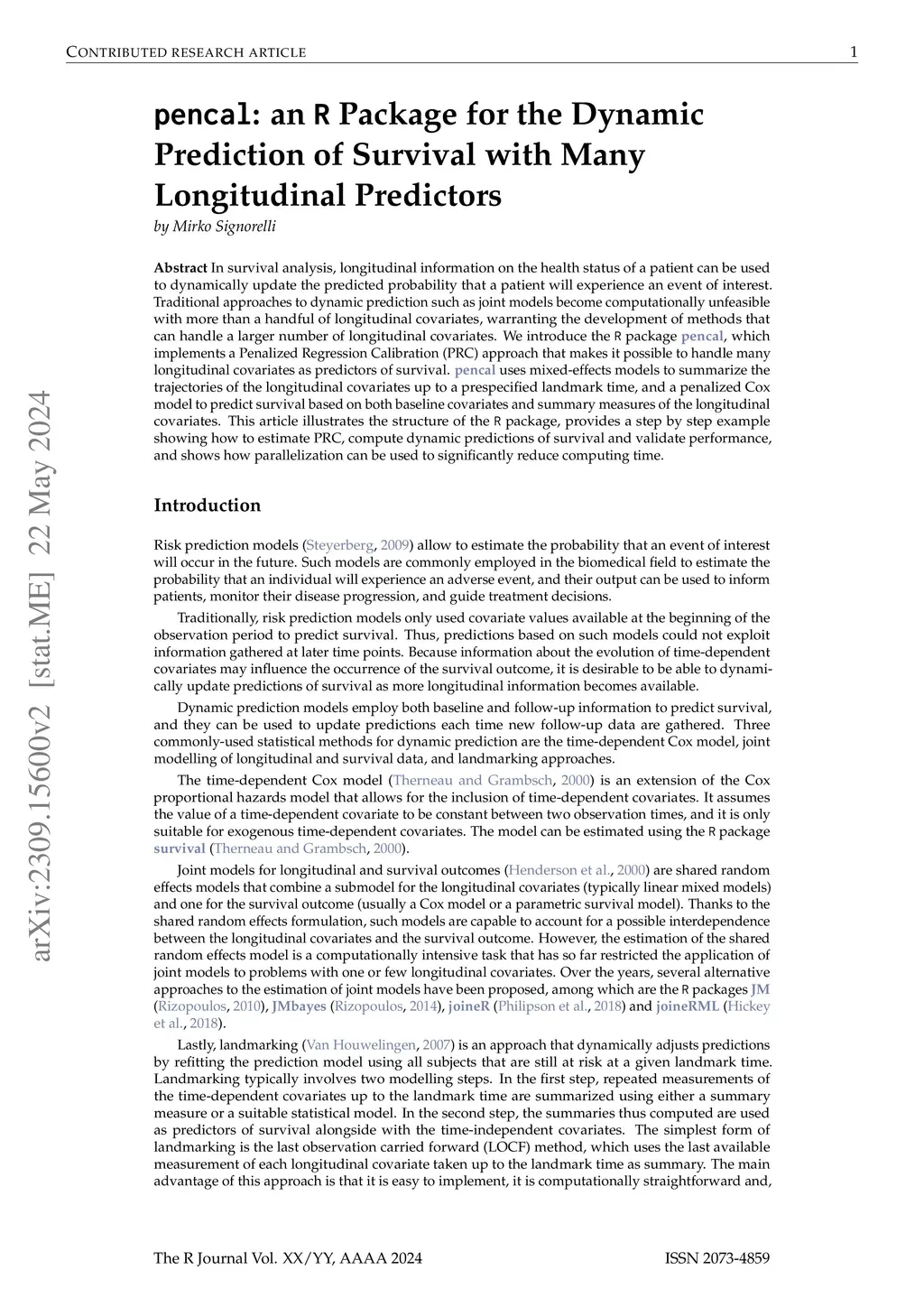 pencal: an R Package for the Dynamic Prediction of Survival with Many