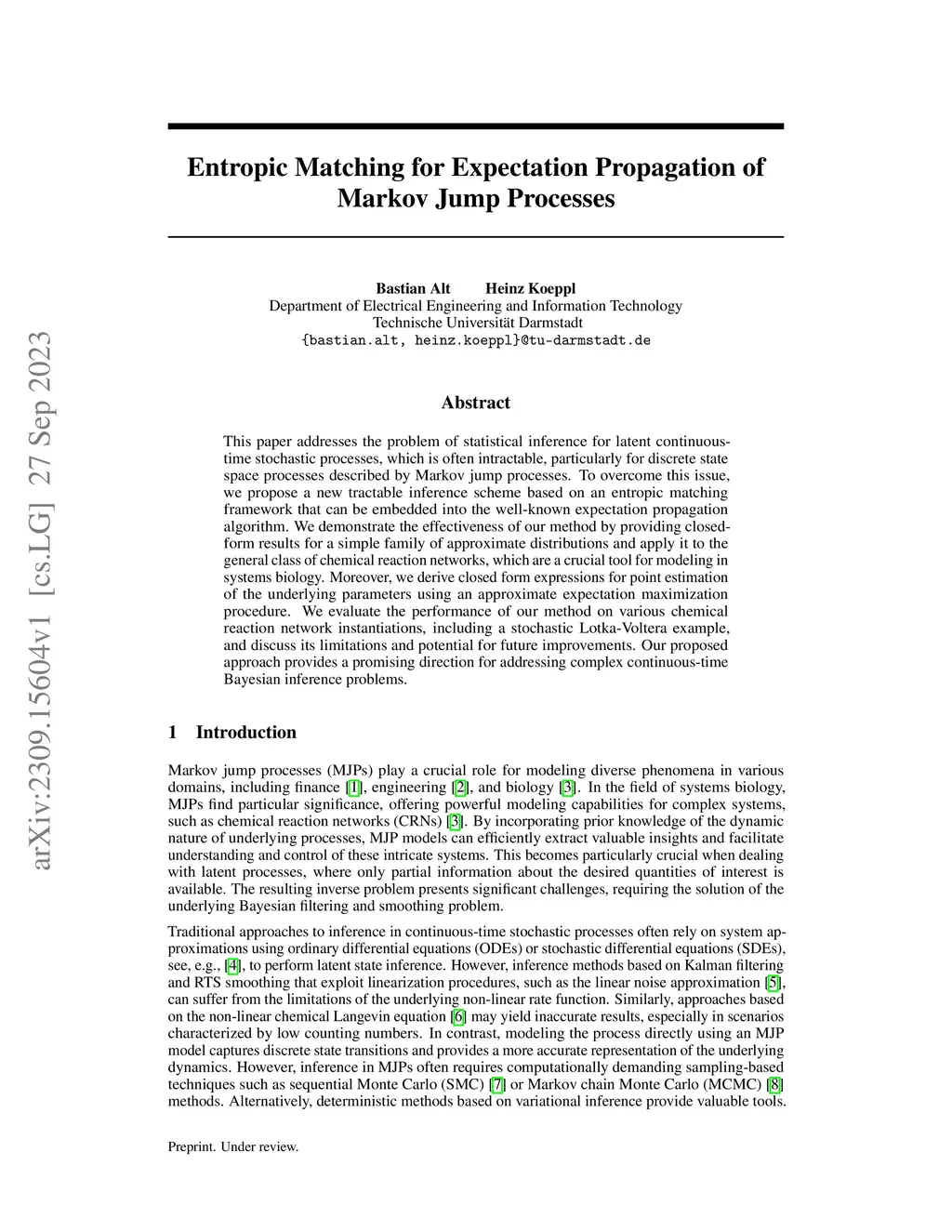 We propose a novel, tractable latent state inference scheme for Markov jump processes, for which exact inference is often intractable. Our approach is based on an entropic matching framework that can be embedded into the well-known expectation propagation algorithm. We demonstrate the effectiveness of our method by providing closed-form results for a simple family of approximate distributions and apply it to the general class of chemical reaction networks, which are a crucial tool for modeling in systems biology. Moreover, we derive closed-form expressions for point estimation of the underlying parameters using an approximate expectation maximization procedure. We evaluate our method across various chemical reaction networks and compare it to multiple baseline approaches, demonstrating superior performance in approximating the mean of the posterior process. Finally, we discuss the limitations of our method and potential avenues for future improvement, highlighting its promising direction for addressing complex continuous-time Bayesian inference problems.