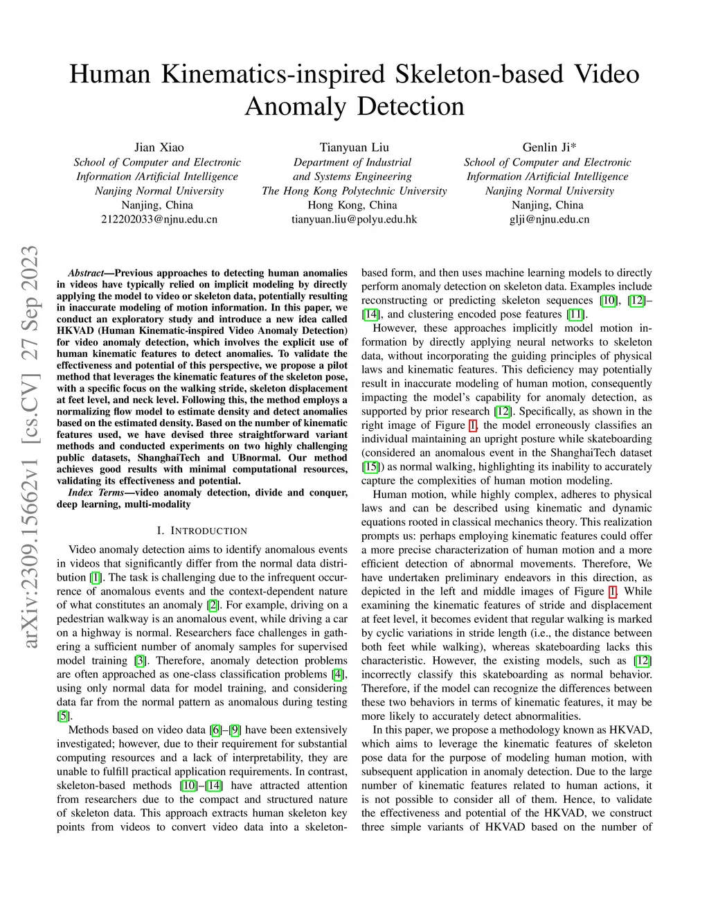 Human Kinematics-inspired Skeleton-based Video Anomaly Detection