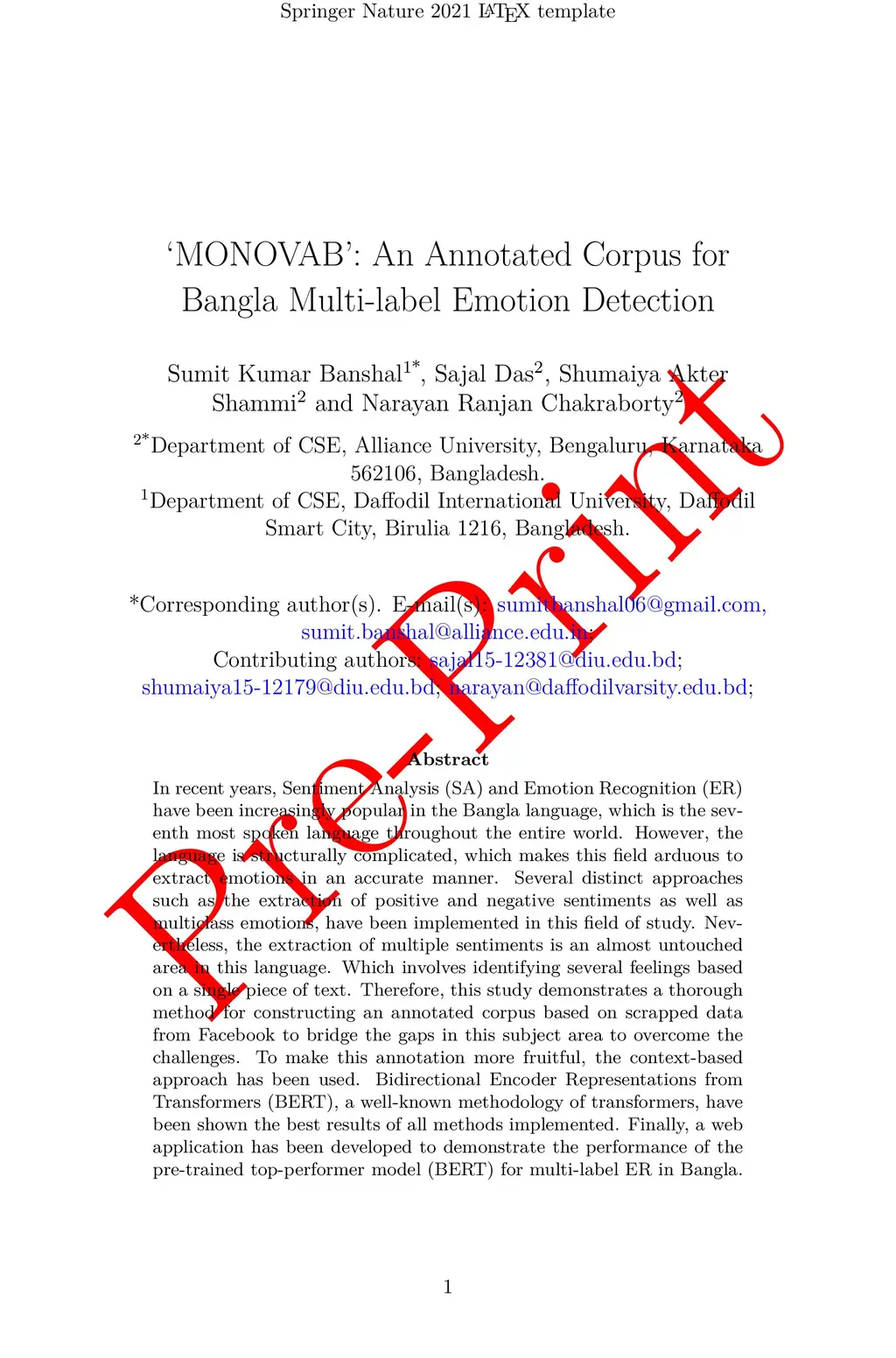MONOVAB : An Annotated Corpus for Bangla Multi-label Emotion Detection