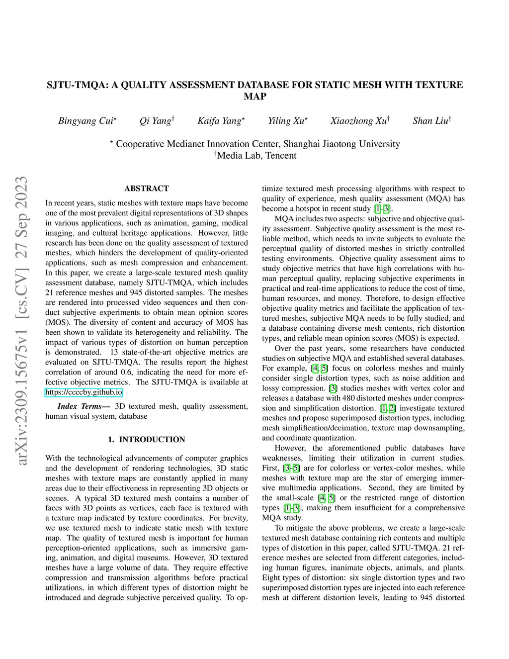 SJTU-TMQA: A quality assessment database for static mesh with texture