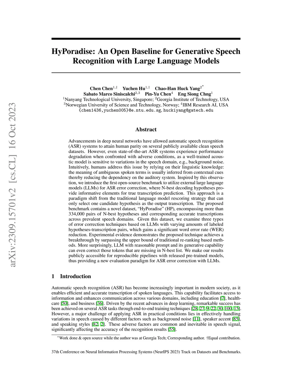 HyPoradise: An Open Baseline for Generative Speech Recognition with