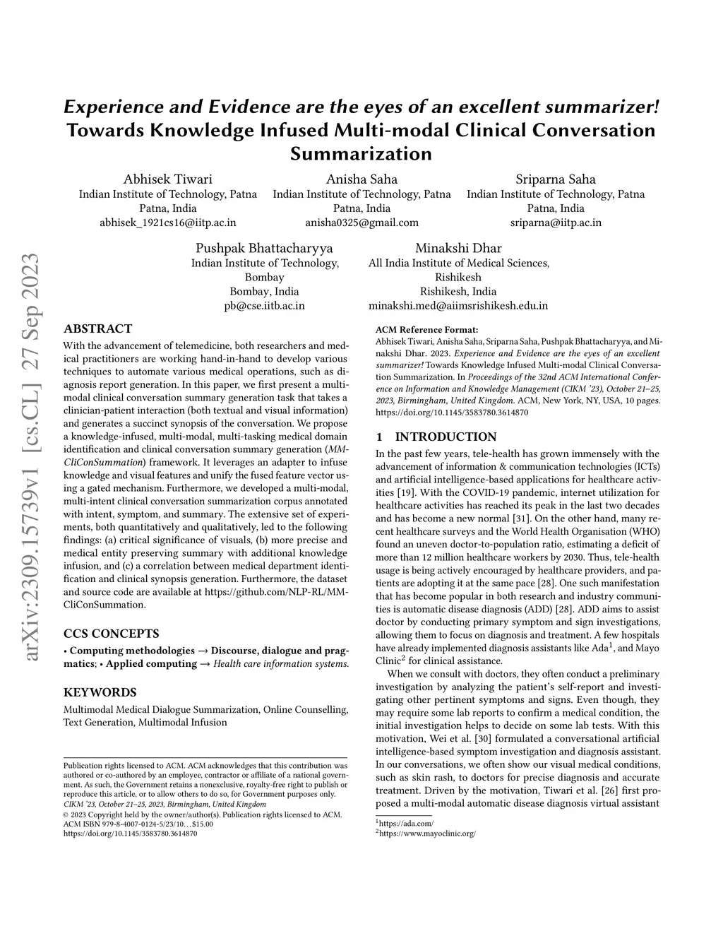 Knowledge Infused Multi-modal Clinical Conversation Summarization