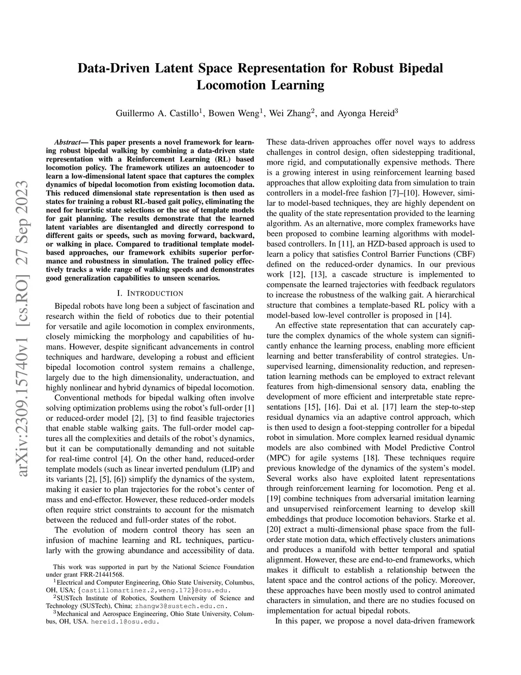 Data-Driven Latent Space Representation for Robust Bipedal Locomotion