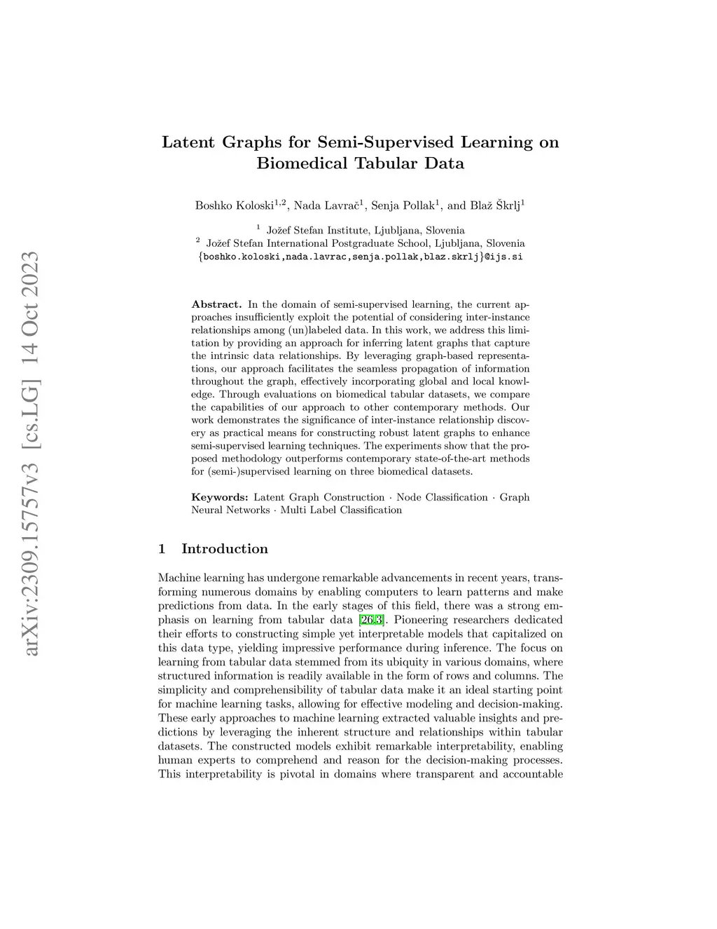 In the domain of semi-supervised learning, the current approaches insufficiently exploit the potential of considering inter-instance relationships among (un)labeled data. In this work, we address this limitation by providing an approach for inferring latent graphs that capture the intrinsic data relationships. By leveraging graph-based representations, our approach facilitates the seamless propagation of information throughout the graph, enabling the effective incorporation of global and local knowledge. Through evaluations on biomedical tabular datasets, we compare the capabilities of our approach to other contemporary methods. Our work demonstrates the significance of inter-instance relationship discovery as practical means for constructing robust latent graphs to enhance semi-supervised learning techniques. Our method achieves state-of-the-art results on three biomedical datasets.