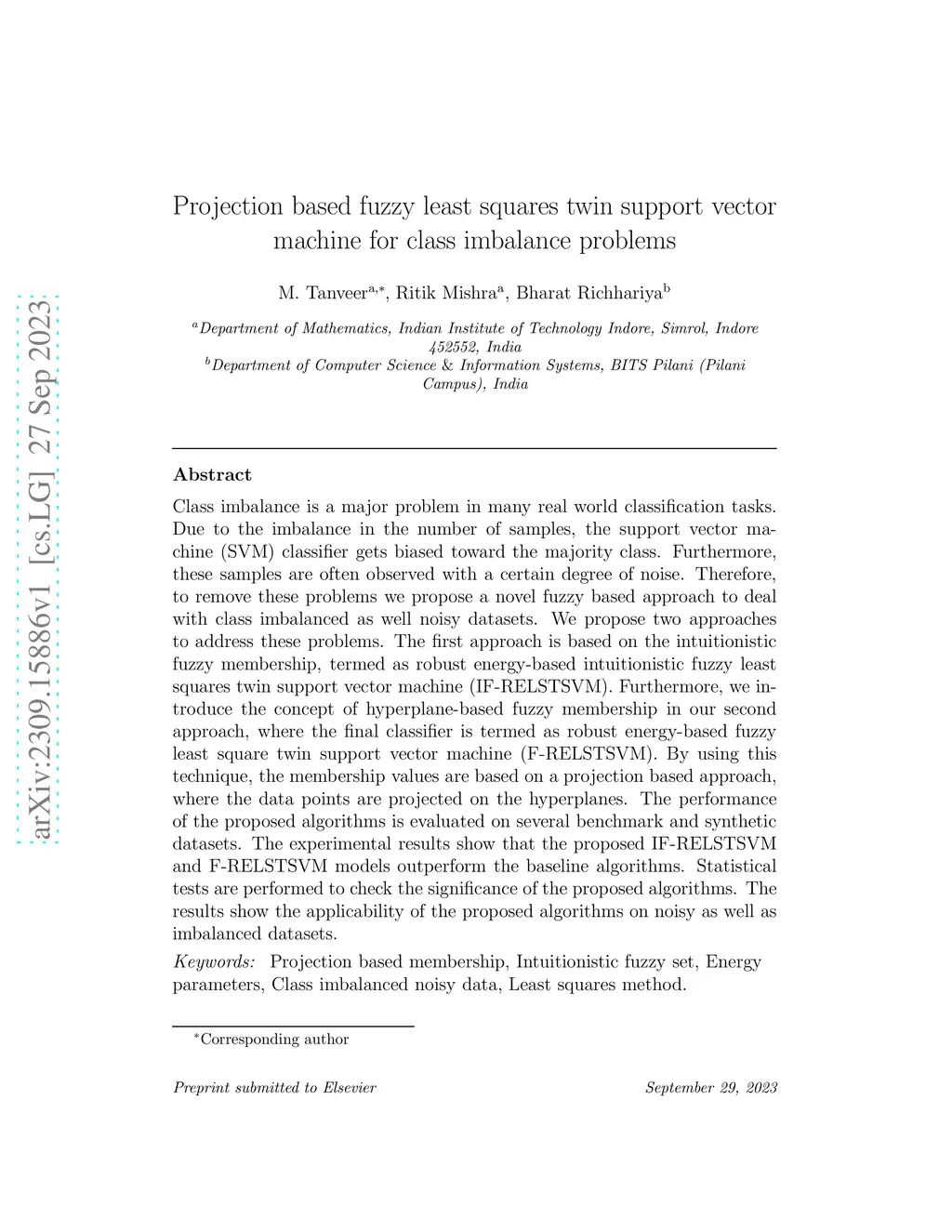 Class imbalance is a major problem in many real world classification tasks. Due to the imbalance in the number of samples, the support vector machine (SVM) classifier gets biased toward the majority class. Furthermore, these samples are often observed with a certain degree of noise. Therefore, to remove these problems we propose a novel fuzzy based approach to deal with class imbalanced as well noisy datasets. We propose two approaches to address these problems. The first approach is based on the intuitionistic fuzzy membership, termed as robust energy-based intuitionistic fuzzy least squares twin support vector machine (IF-RELSTSVM). Furthermore, we introduce the concept of hyperplane-based fuzzy membership in our second approach, where the final classifier is termed as robust energy-based fuzzy least square twin support vector machine (F-RELSTSVM). By using this technique, the membership values are based on a projection based approach, where the data points are projected on the hyperplanes. The performance of the proposed algorithms is evaluated on several benchmark and synthetic datasets. The experimental results show that the proposed IF-RELSTSVM and F-RELSTSVM models outperform the baseline algorithms. Statistical tests are performed to check the significance of the proposed algorithms. The results show the applicability of the proposed algorithms on noisy as well as imbalanced datasets.