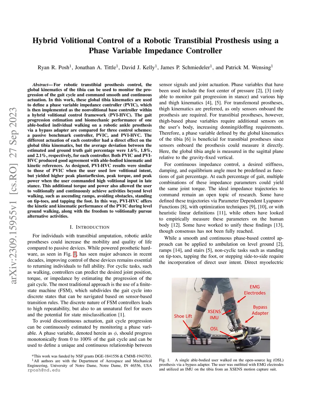 Hybrid Volitional Control of a Robotic Transtibial Prosthesis using a