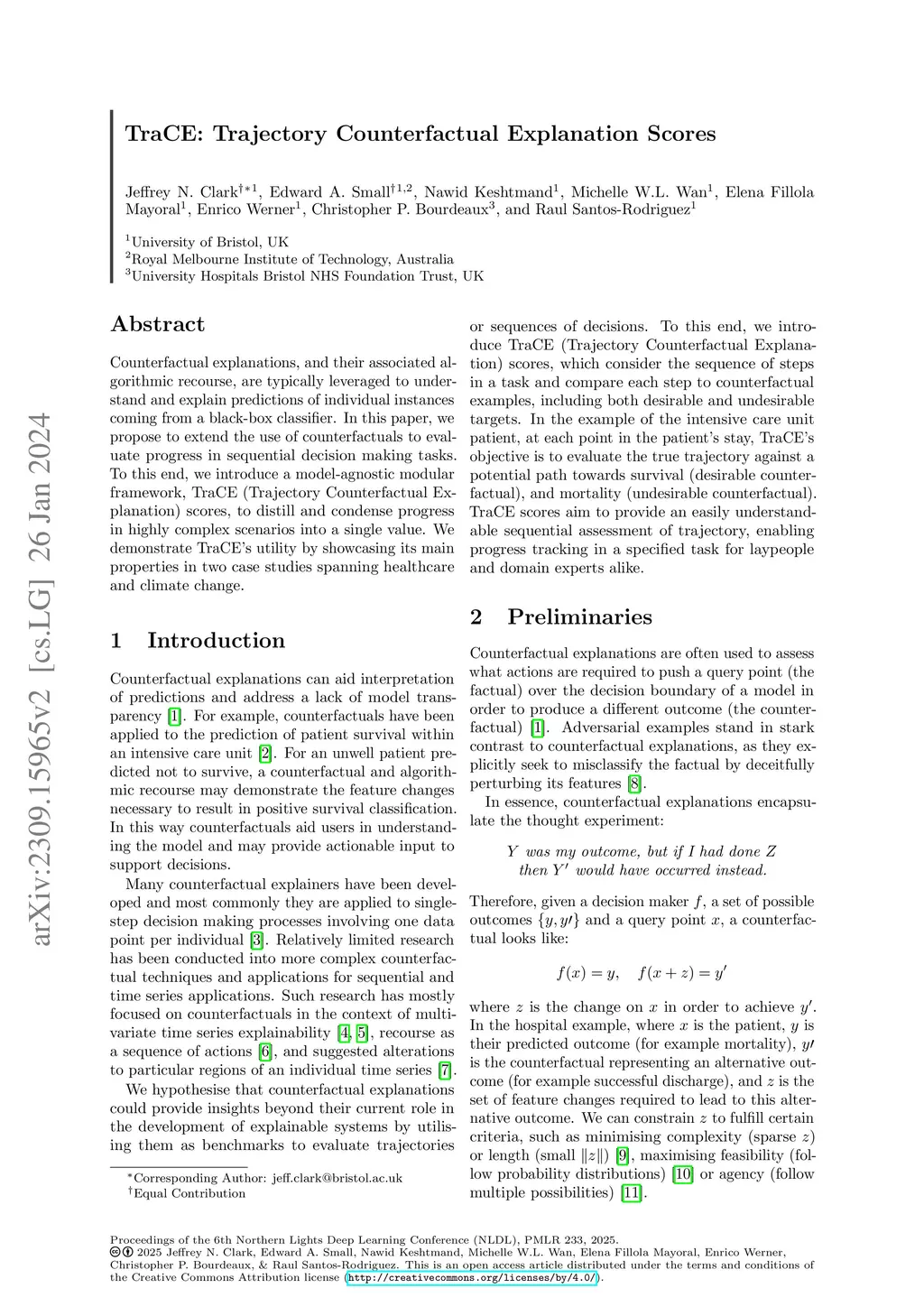 Counterfactual explanations, and their associated algorithmic recourse, are typically leveraged to understand, explain, and potentially alter a prediction coming from a black-box classifier. In this paper, we propose to extend the use of counterfactuals to evaluate progress in sequential decision making tasks. To this end, we introduce a model-agnostic modular framework, TraCE (Trajectory Counterfactual Explanation) scores, which is able to distill and condense progress in highly complex scenarios into a single value. We demonstrate TraCE's utility across domains by showcasing its main properties in two case studies spanning healthcare and climate change.