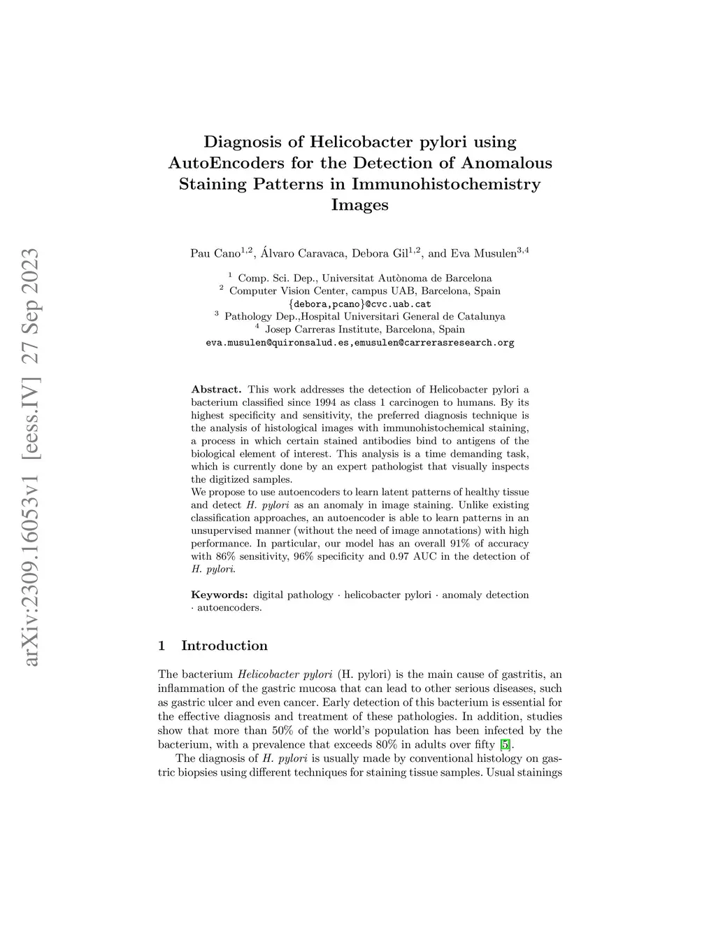 Diagnosis of Helicobacter pylori using AutoEncoders for the Detection of