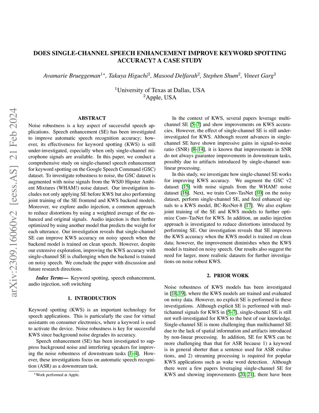 Does Single-channel Speech Enhancement Improve Keyword Spotting