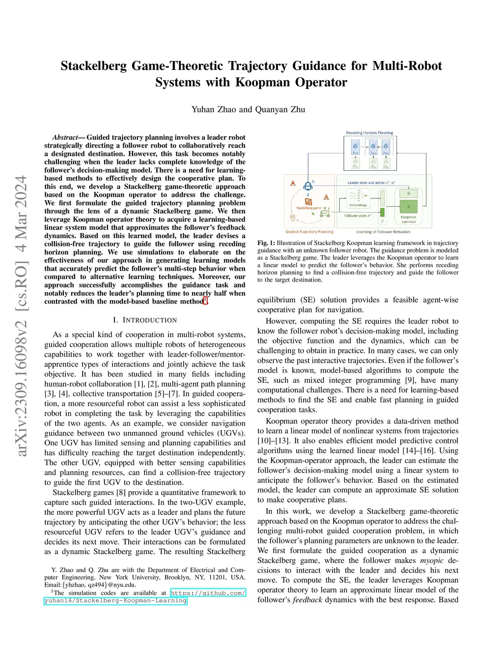 Stackelberg Game-Theoretic Trajectory Guidance for Multi-Robot Systems