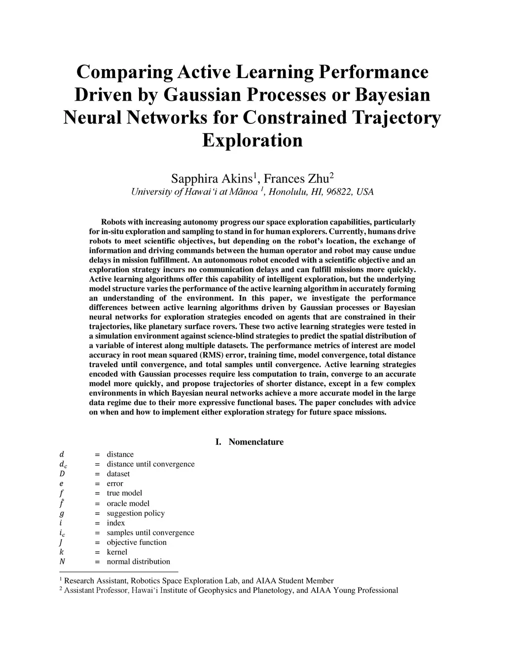 Robots with increasing autonomy progress our space exploration capabilities, particularly for in-situ exploration and sampling to stand in for human explorers. Currently, humans drive robots to meet scientific objectives, but depending on the robot's location, the exchange of information and driving commands between the human operator and robot may cause undue delays in mission fulfillment. An autonomous robot encoded with a scientific objective and an exploration strategy incurs no communication delays and can fulfill missions more quickly. Active learning algorithms offer this capability of intelligent exploration, but the underlying model structure varies the performance of the active learning algorithm in accurately forming an understanding of the environment. In this paper, we investigate the performance differences between active learning algorithms driven by Gaussian processes or Bayesian neural networks for exploration strategies encoded on agents that are constrained in their trajectories, like planetary surface rovers. These two active learning strategies were tested in a simulation environment against science-blind strategies to predict the spatial distribution of a variable of interest along multiple datasets. The performance metrics of interest are model accuracy in root mean squared (RMS) error, training time, model convergence, total distance traveled until convergence, and total samples until convergence. Active learning strategies encoded with Gaussian processes require less computation to train, converge to an accurate model more quickly, and propose trajectories of shorter distance, except in a few complex environments in which Bayesian neural networks achieve a more accurate model in the large data regime due to their more expressive functional bases. The paper concludes with advice on when and how to implement either exploration strategy for future space missions.