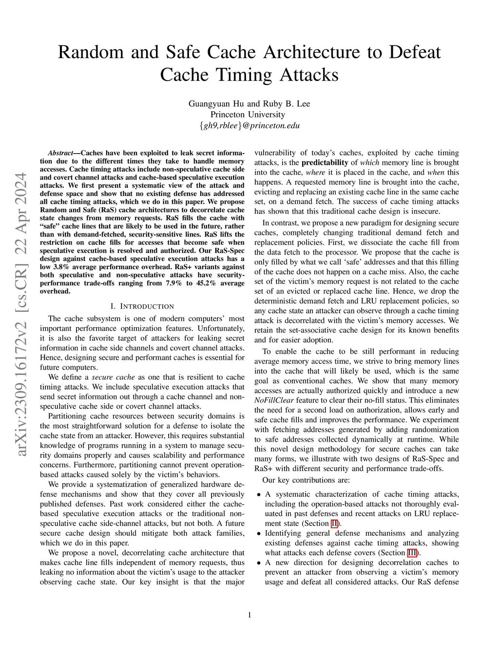 Random and Safe Cache Architecture to Defeat Cache Timing Attacks