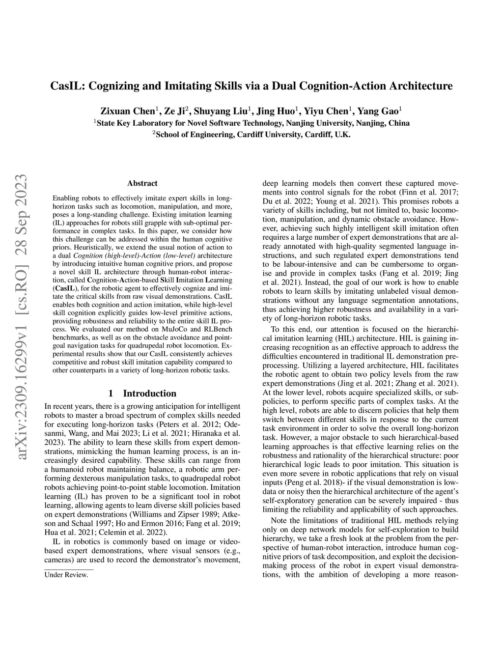 CasIL: Cognizing and Imitating Skills via a Dual Cognition-Action