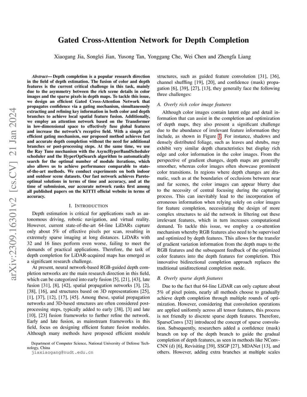 Gated Cross-Attention Network for Depth Completion