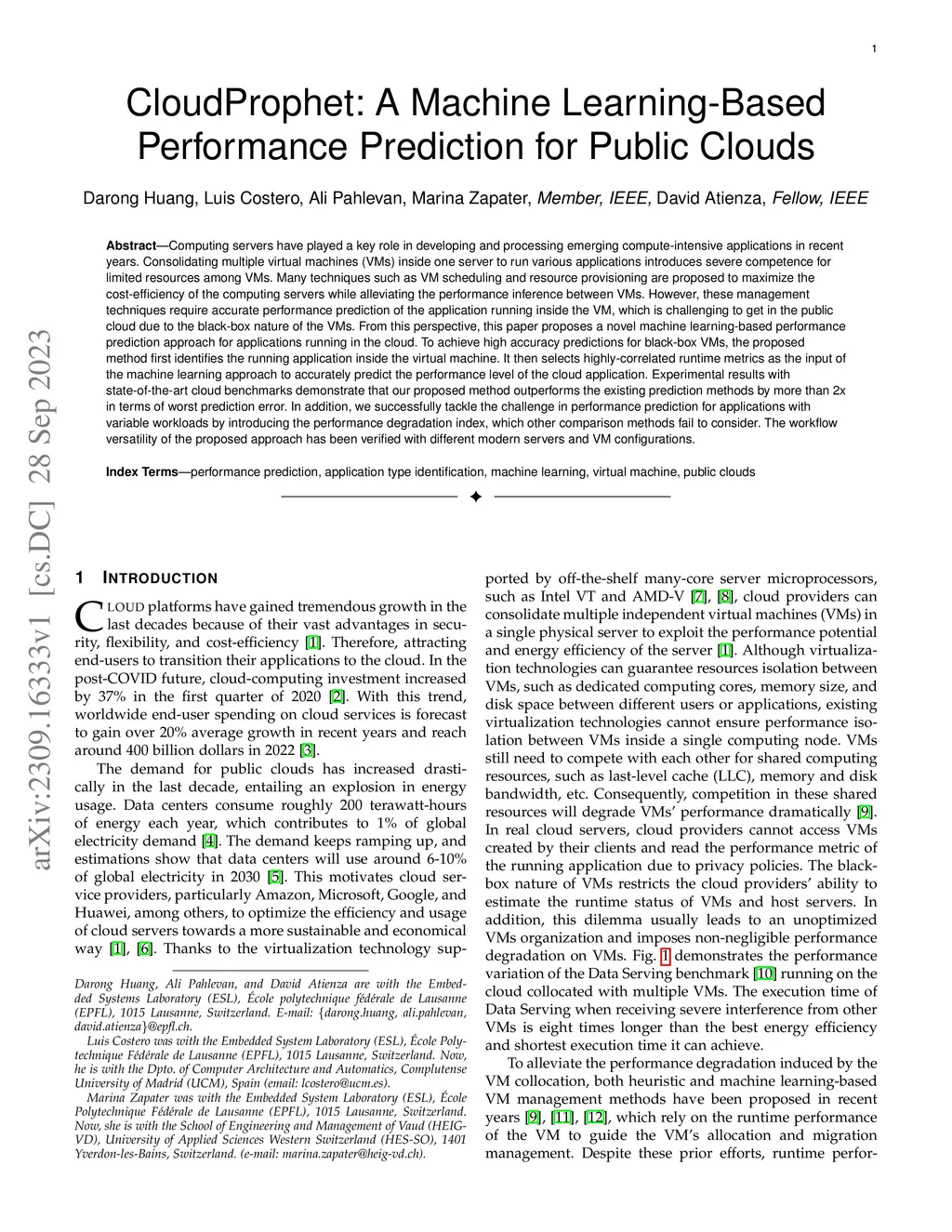 CloudProphet: A Machine Learning-Based Performance Prediction for Public