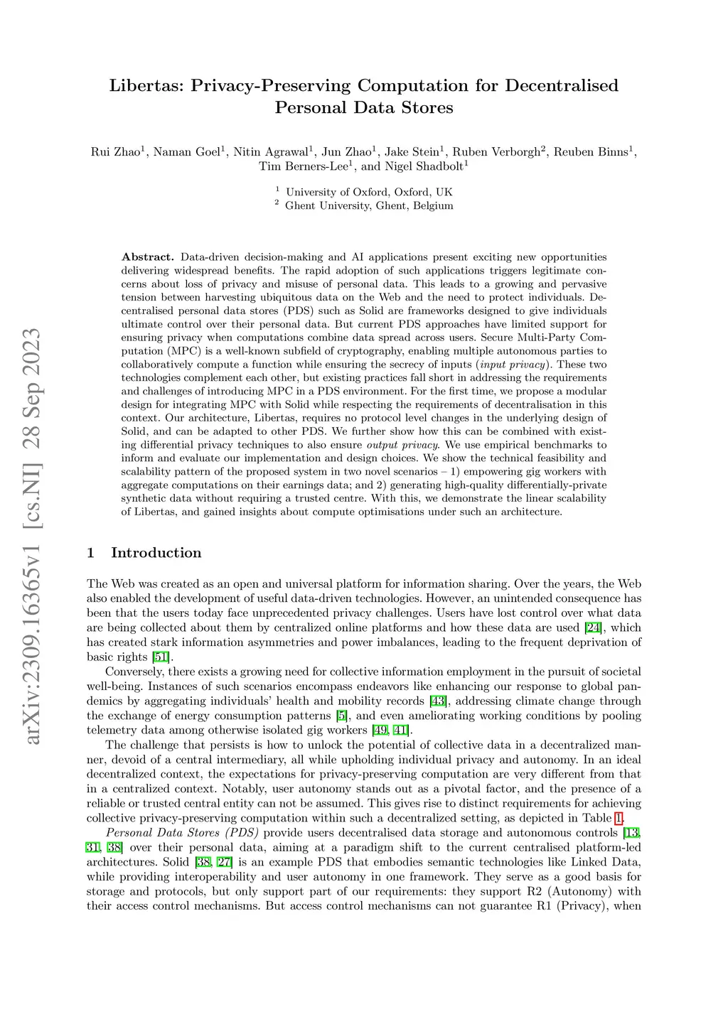 Data and data processing have become an indispensable aspect for our society. Insights drawn from collective data make invaluable contribution to scientific and societal research and business. But there are increasing worries about privacy issues and data misuse. This has prompted the emergence of decentralised personal data stores (PDS) like Solid that provide individuals more control over their personal data. However, existing PDS frameworks face challenges in ensuring data privacy when performing collective computations with data from multiple users. While Secure Multi-Party Computation (MPC) offers input secrecy protection during the computation without relying on any single party, issues emerge when directly applying MPC in the context of PDS, particularly due to key factors like autonomy and decentralisation. In this work, we discuss the essence of this issue, identify a potential solution, and introduce a modular architecture, Libertas, to integrate MPC with PDS like Solid, without requiring protocol-level changes. We introduce a paradigm shift from an `omniscient' view to individual-based, user-centric view of trust and security, and discuss the threat model of Libertas. Two realistic use cases for collaborative data processing are used for evaluation, both for technical feasibility and empirical benchmark, highlighting its effectiveness in empowering gig workers and generating differentially private synthetic data. The results of our experiments underscore Libertas' linear scalability and provide valuable insights into compute optimisations, thereby advancing the state-of-the-art in privacy-preserving data processing practices. By offering practical solutions for maintaining both individual autonomy and privacy in collaborative data processing environments, Libertas contributes significantly to the ongoing discourse on privacy protection in data-driven decision-making contexts.