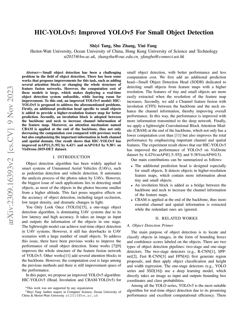 HIC-YOLOv5: Improved YOLOv5 For Small Object Detection