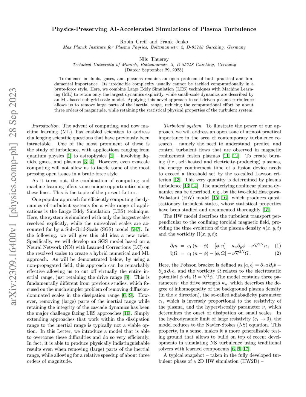 Physics-Preserving AI-Accelerated Simulations of Plasma Turbulence