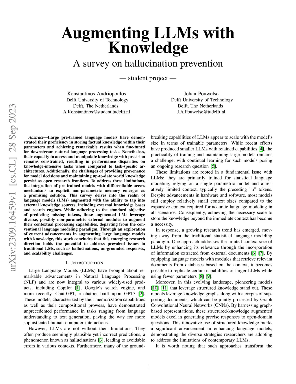 Augmenting LLMs with Knowledge: A survey on hallucination prevention