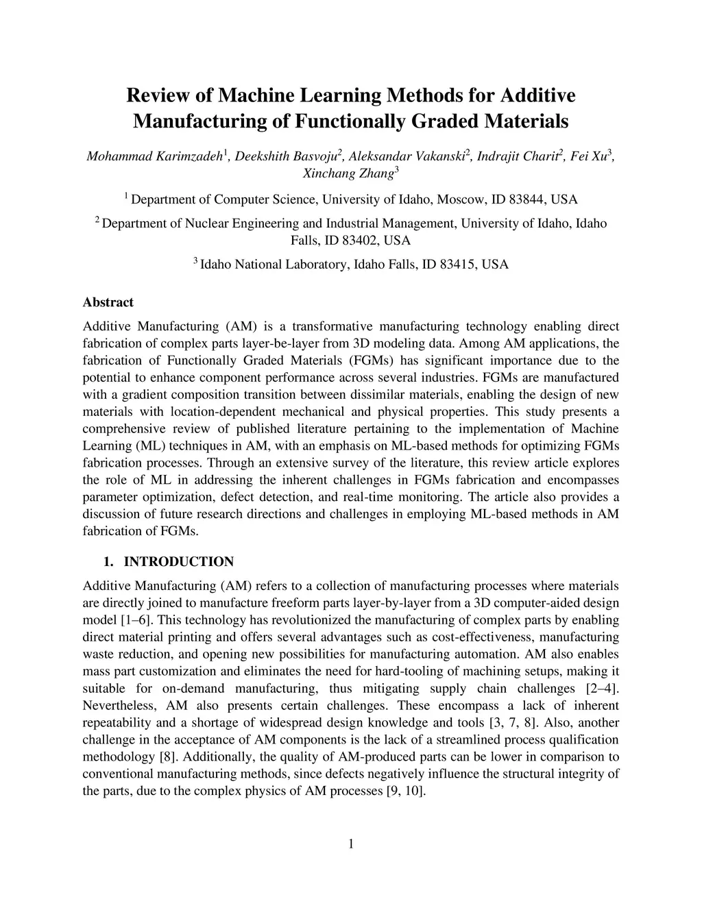 Review of Machine Learning Methods for Additive Manufacturing of