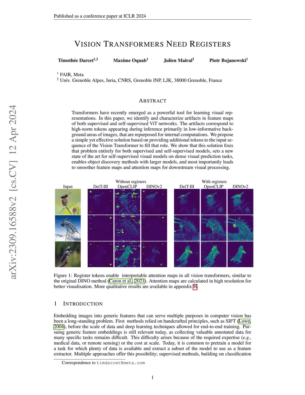 Vision Transformers Need Registers