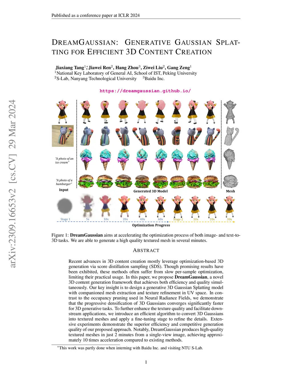 DreamGaussian: Generative Gaussian Splatting for Efficient 3D Content