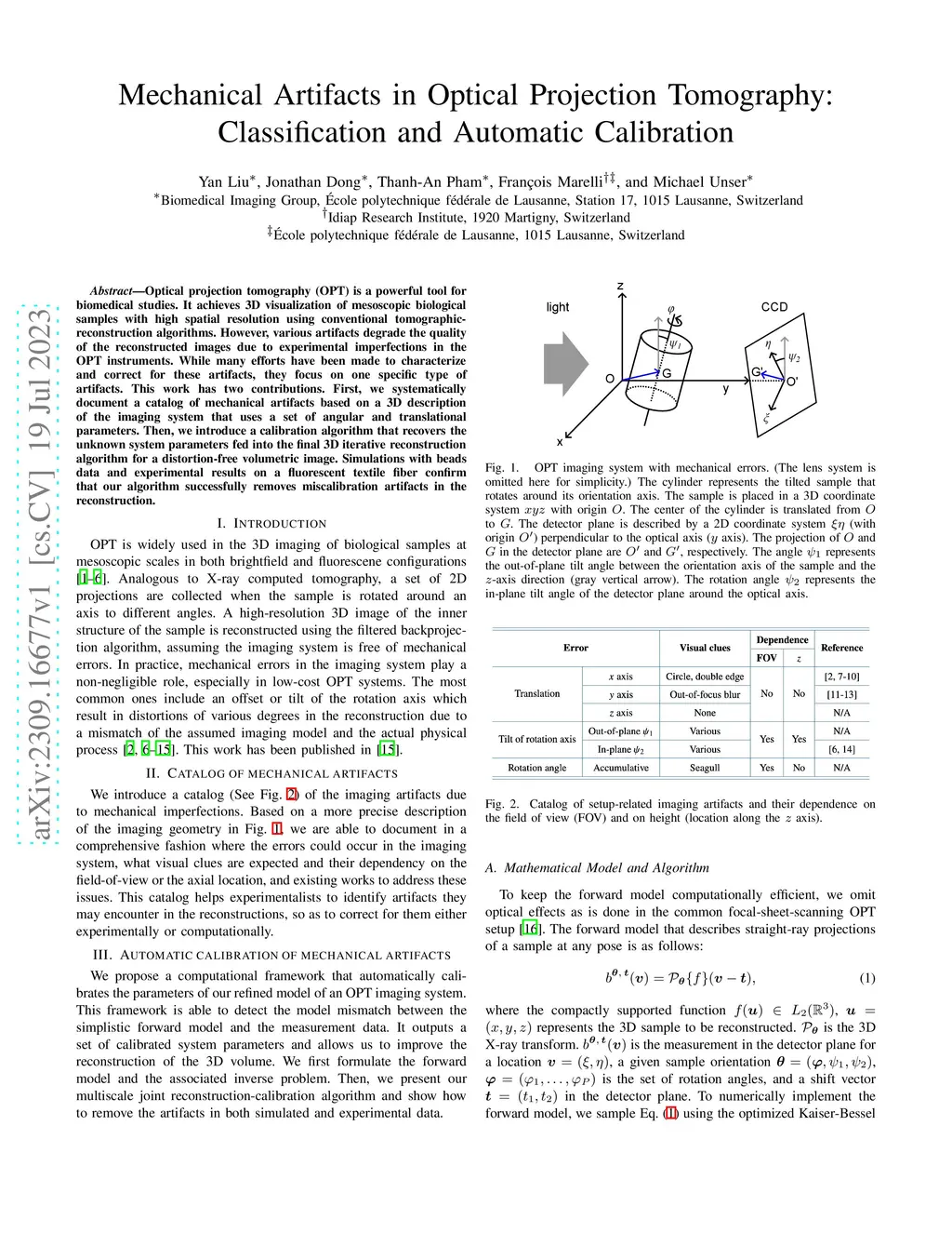 Mechanical Artifacts in Optical Projection Tomography: Classification